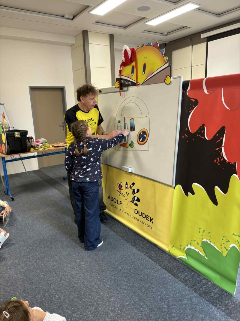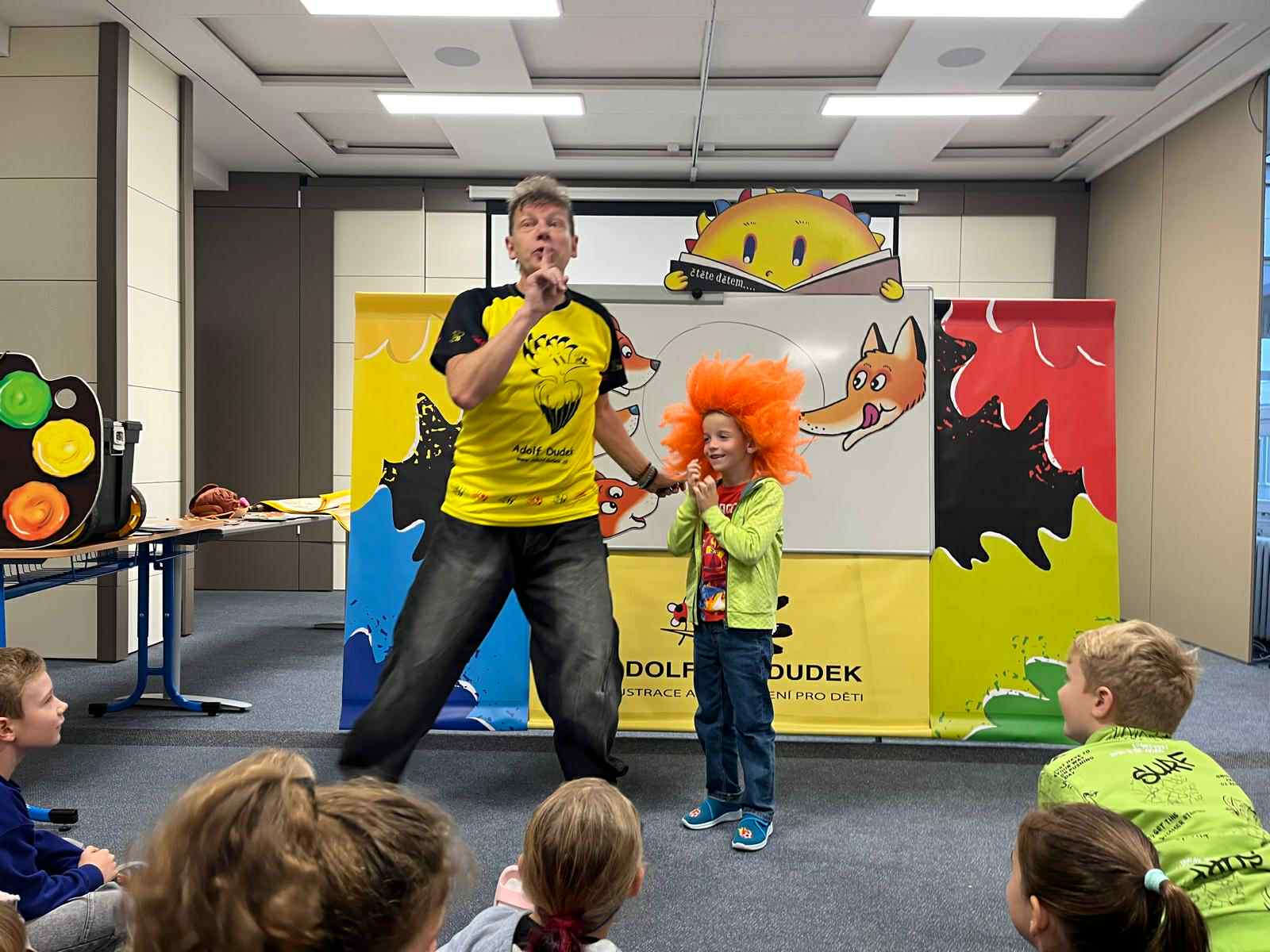 Tři z besed byly věnovány pohádkám – O Budulínkovi, Červené karkulce a Boudě budce. Děti si společně s panem Dudkem nejen připomněly známé příběhy, ale také si vyzkoušely, jak se dají pohádky oživit pomocí ilustrací, gest a humoru.