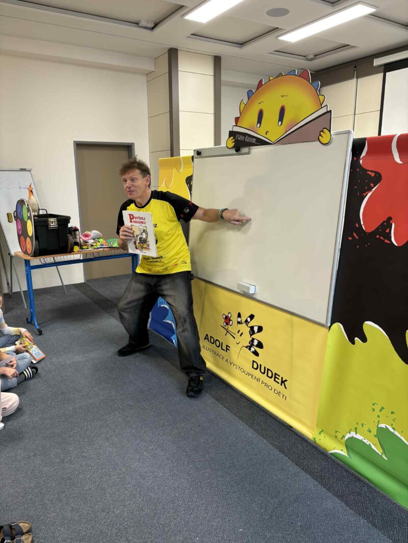 Ve středu 16. října navštívil naši školu známý ilustrátor Adolf Dudek. Během dne se uskutečnily celkem čtyři besedy, které byly plné zábavy, smíchu i tvořivého kreslení.