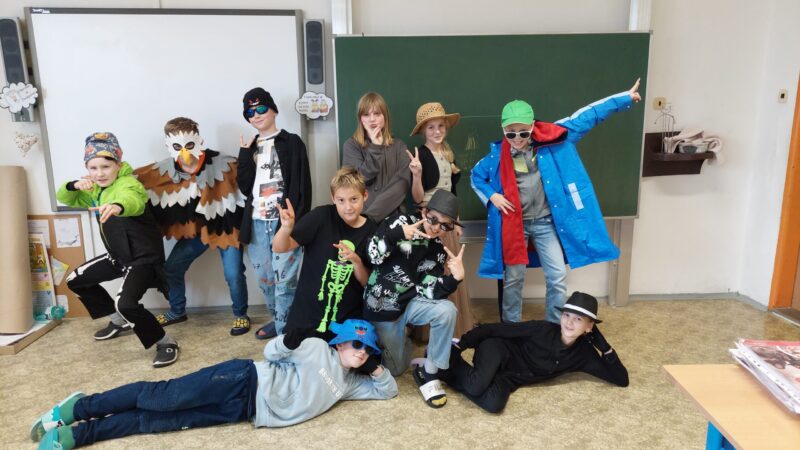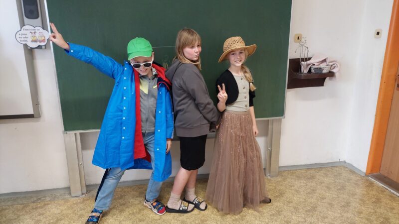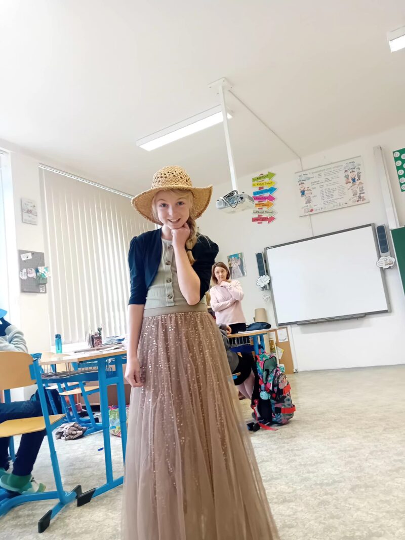 Kdo by neměl rád kostýmy a jejich zkoušení a promenádování se v nich? Naši čtvrťáci z 1. sk to milují! V projektové hodině „Old and new clothes” se převlékli do kostýmů a jiných „funny” outfitů a vyrazili na improvizované přehlídkové molo mezi své spolužáky. Každý z žáků měl možnost se nám předvést a také měl možnost okomentovat svého kamaráda v anglickém jazyce. Modely byly povedené! Všichni jsme si užili krásné chvilky plné ladné chůze, ale i výbuchy smíchu nad rozmanitými pózami dětí. Děti na konec hodiny hodnotily samy sebe po jazykové i estetické stránce a volily nejlepší kostým a srandistu.