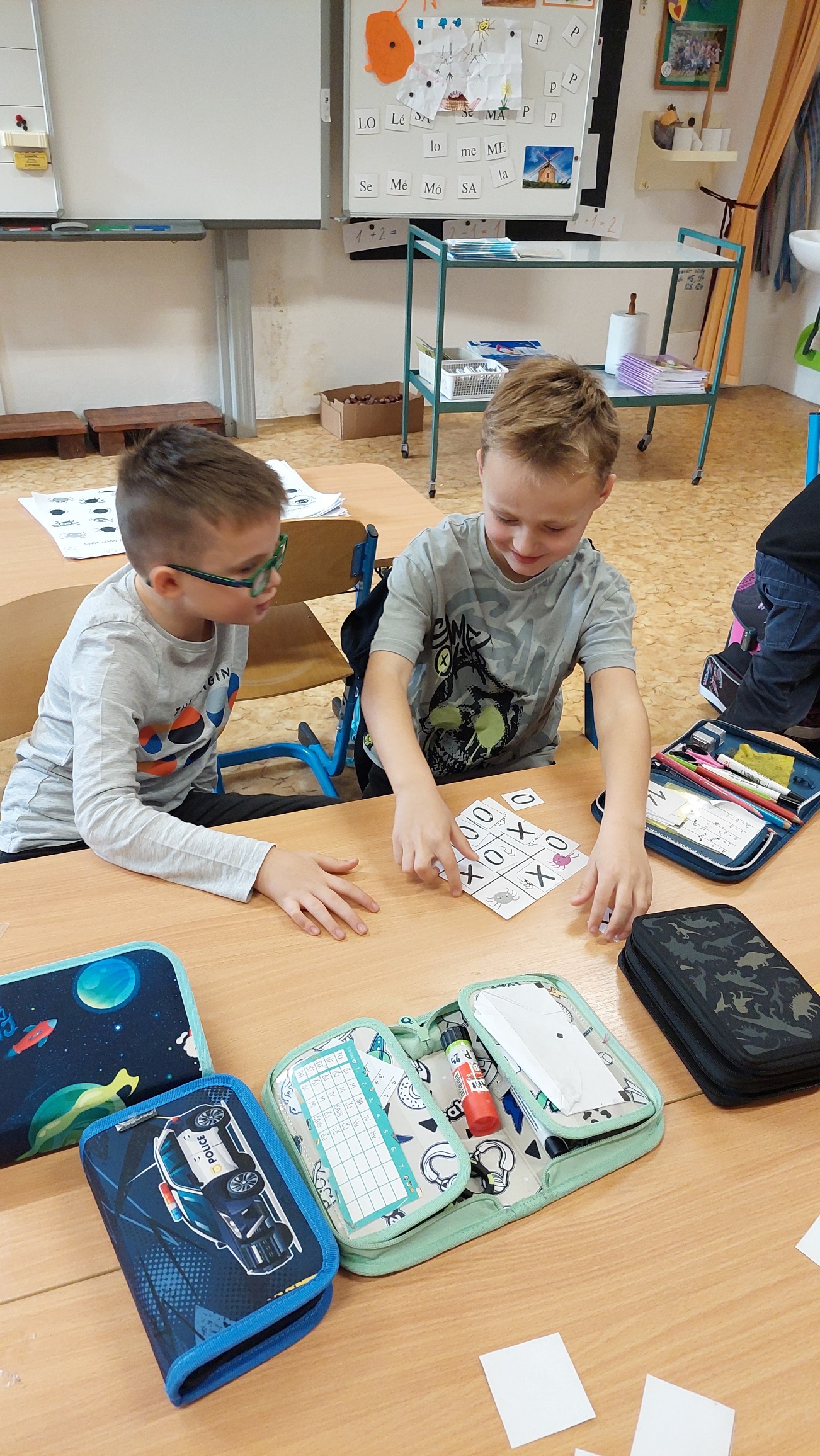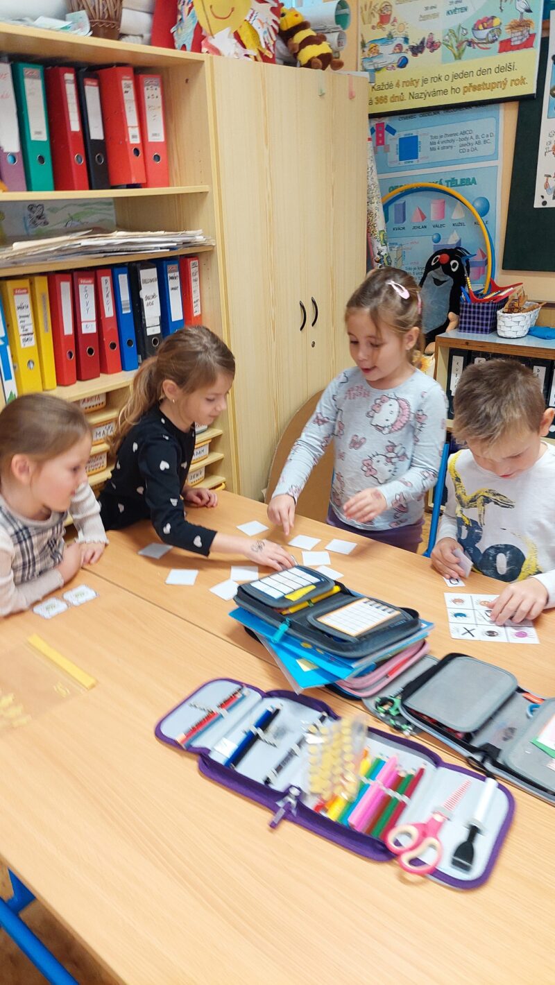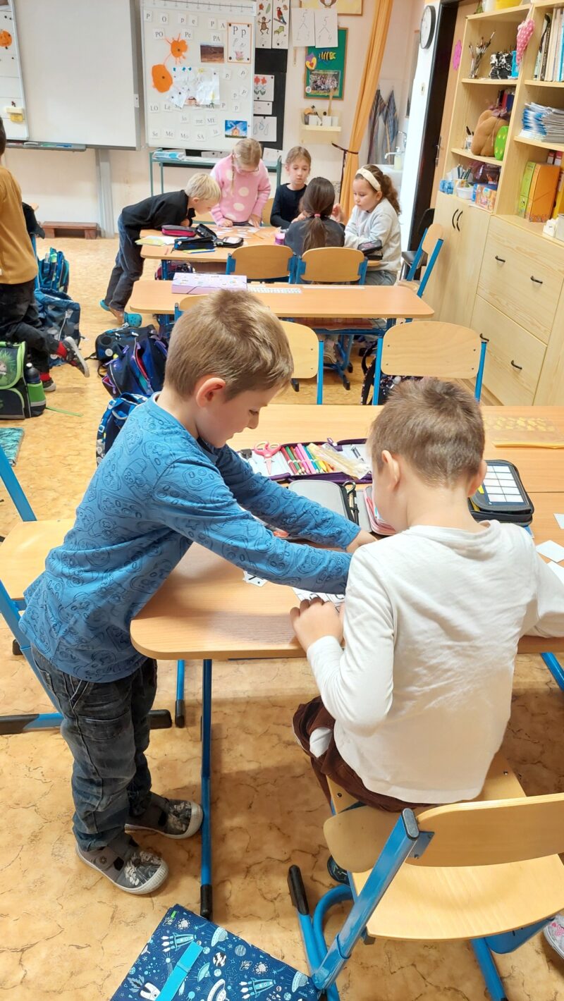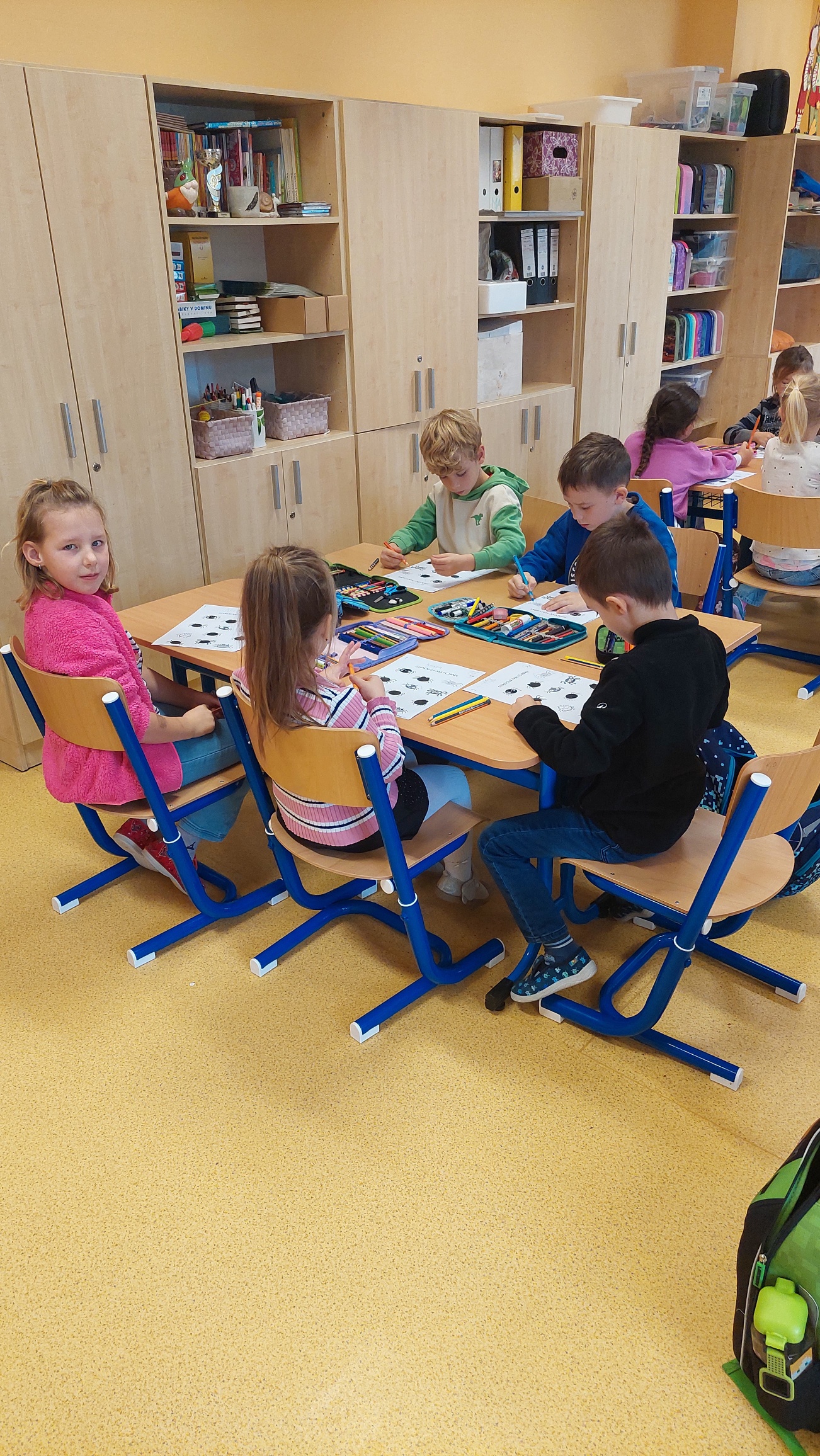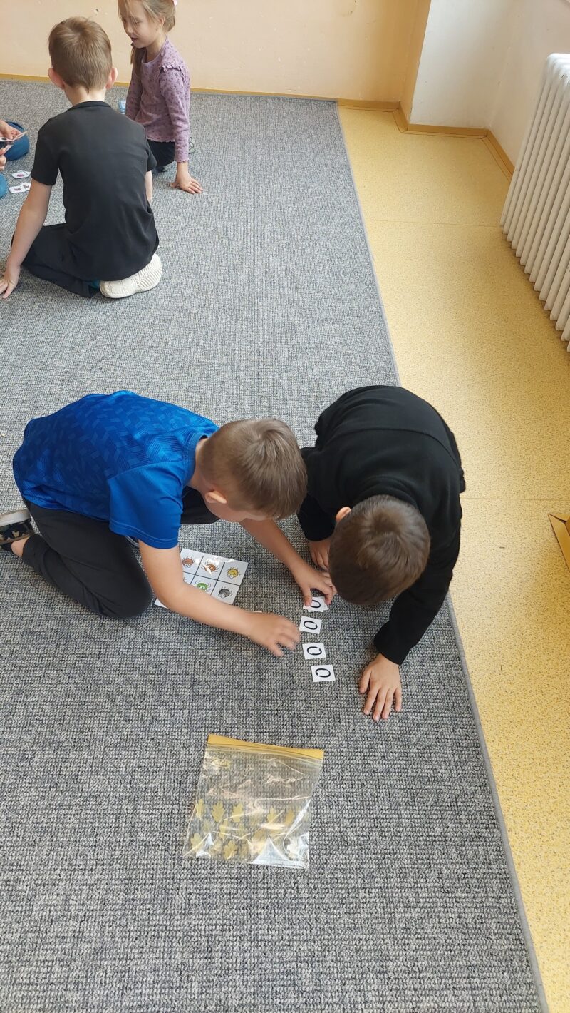 Naši nejmladší záčci z prvního stupně si vyzkoušeli první anglickou projektovou spolupráci. Tématem byl „Halloween”. Děti pracovaly v menších skupinkách. Úkolem bylo splnit úkoly na pracovních listech a po vypracování si s kamarády na koberci zahrát „pavoučí pexeso nebo piškvorky”. Chválím všechny děti. Zvládly všechna projektová zadání v naší krátké čtyřicetipětiminutové hodině. Na dětech bylo vidět hluboké přemýšlení i radost z her. Domníváme se, že si to naši prvnáčci užili.
