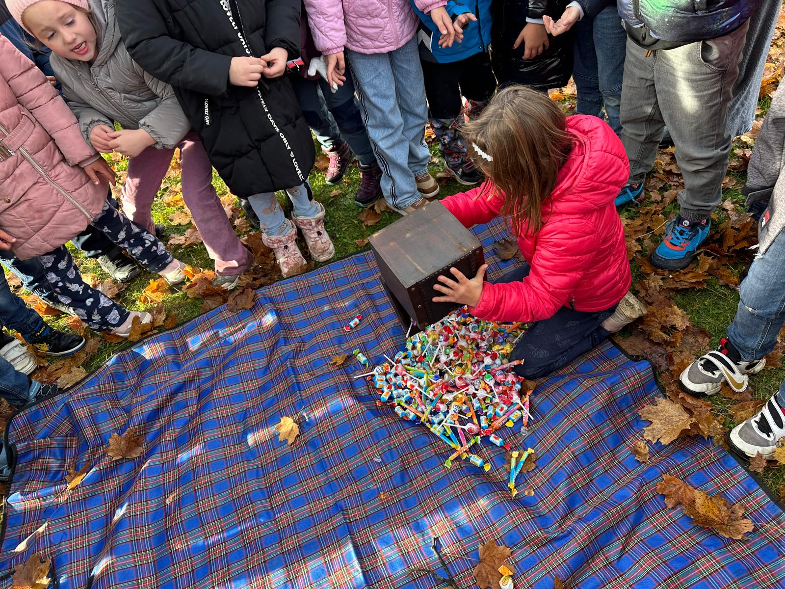 Najít ztracený poklad chtěly všechny děti z naší školní družiny. Každé oddělení vyrazilo jiný den a na jiné místo. Malá procházka a plnění úkolů bylo pro každého radostí. Na konci naší cesty čekal poklad. Děti měly velkou radost z cukrovinek ukrytých v truhle. Sluníčko svítilo a nás ani nenapadlo, že zima je za dveřmi.