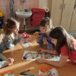 Třeťáčci se učí vytvářet otázky pomocí fráze ARE YOU…? Aby si to lépe zažili, vyzkoušeli si hru. Hodili kostkou, postoupili na políčko, vytvořili větu. V druhém kole hodili kostkou, postoupili, kamarád jim položil otázku ARE YOU..? Děti musely správně odpovědět, aby mohly postoupit dál. Podobně jako ve hře Člověče nezlob se i tady se vracelo...